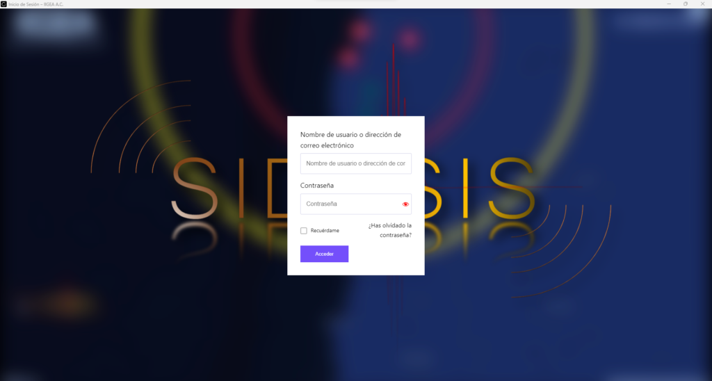 Ejecuta el archivo con nombre SIDESIS - IIGEA A.C.exe e ingresa tus credenciales de acceso en la siguiente pantalla: